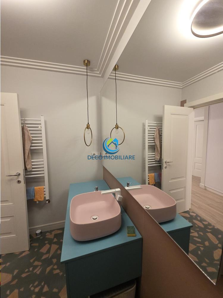 Apartamentul este orientat Sud si Vest, retras de la strada principala si este compartimentat astfel: hol intrare care a fost optimizat cu un cuier si spatii de depozitare generoase; o baie cu walk-in shower si un WC cu linie de spalat si uscat Miele; doua dormitoare cu lumini ambientale si zonale, mobilate cu paturi de 140*200 cm, birouri si dulapuri, ambele cu iesire in balcon; living impreuna cu zona de bucatarie si de luat masa, cu aer conditionat si terasa de aproximativ 20 mp cu vedere catre parc, dotata cu copertina electrica cu telecomanda. Zona de bucatarie este de asemenea complet mobilata si utilata cu combina frigorifica, spatiu depozitare alimente, masina de spalat vase, cuptor incorporat Miele, hota.