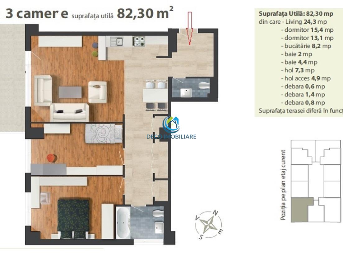 ID Oferta: 33428, Actualizat la: 10.2.2026Va propunem spre vanzare un apartament in Centru situat in bloc de 10 etaje construit in anul 2014. Apartamentul este situat la etajul 6, are 3 camere, 2 bai , 1 balcon terasa de 10 mp, este decomandat si are o suprafata totala de 96 mp, respectiv 83 mp suprafata utila. Apartamentul este finisat, mobilat si utilat, izolat termic, parchet, gresie, faianta. Loc de parcare cu telecomanda in garajul subteran cu acces direct la lift. Dispune de paza 24/7 si supraveghere video. Ca si localizare, apartamentul este situat in Centru , pe strada Dorobantilor si in apropiere de Parcul Fraternitatii. ID intern: 33428