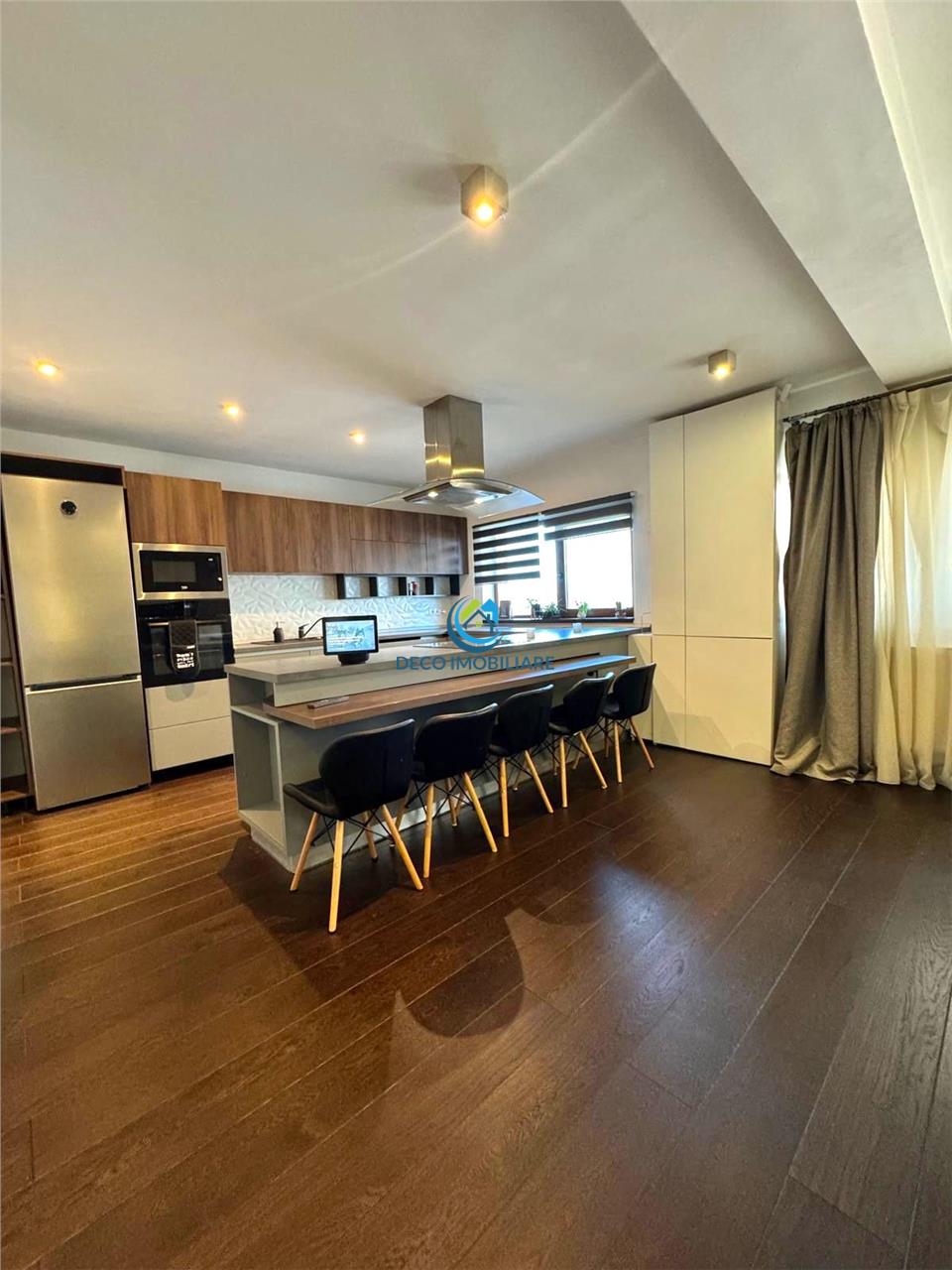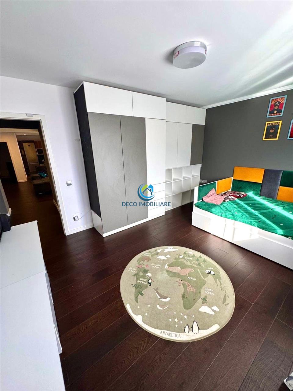 Apartamentul se vinde complet mobilat si utilat cu aparatura electrocasnica moderna din 2025, obiecte sanitare de calitate, aer conditionat, sistem de sonorizare incorporat, sistem de iluminat inteligent, lumini ambientale cu LED si sistem de securitate cu senzori de prezenta.