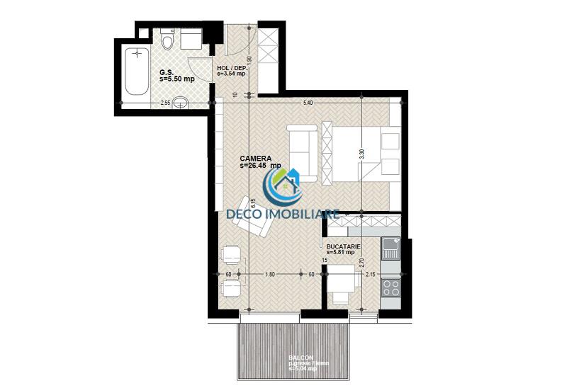 Apartamentul este compartimentat in hol intrare, zona de zi, zona de dormit, bucatarie, baie si balcon.